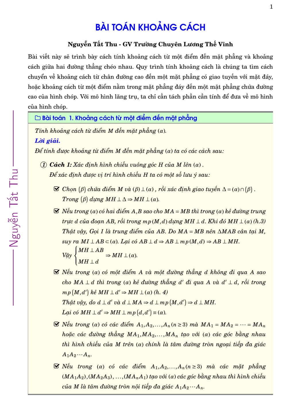 Bài toán khoảng cách trong không gian – Nguyễn Tất Thu