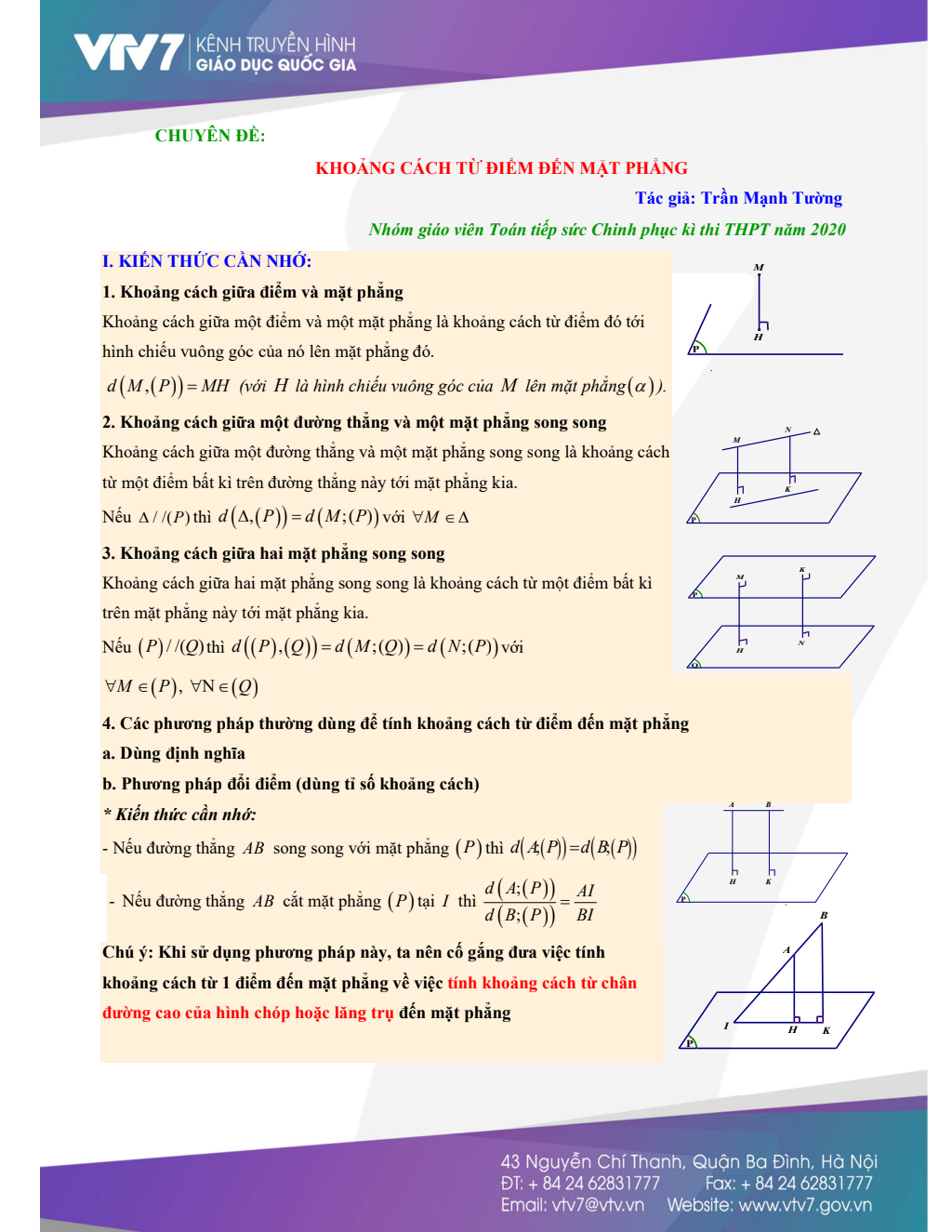 Chuyên đề khoảng cách từ điểm đến mặt phẳng – Trần Mạnh Tường