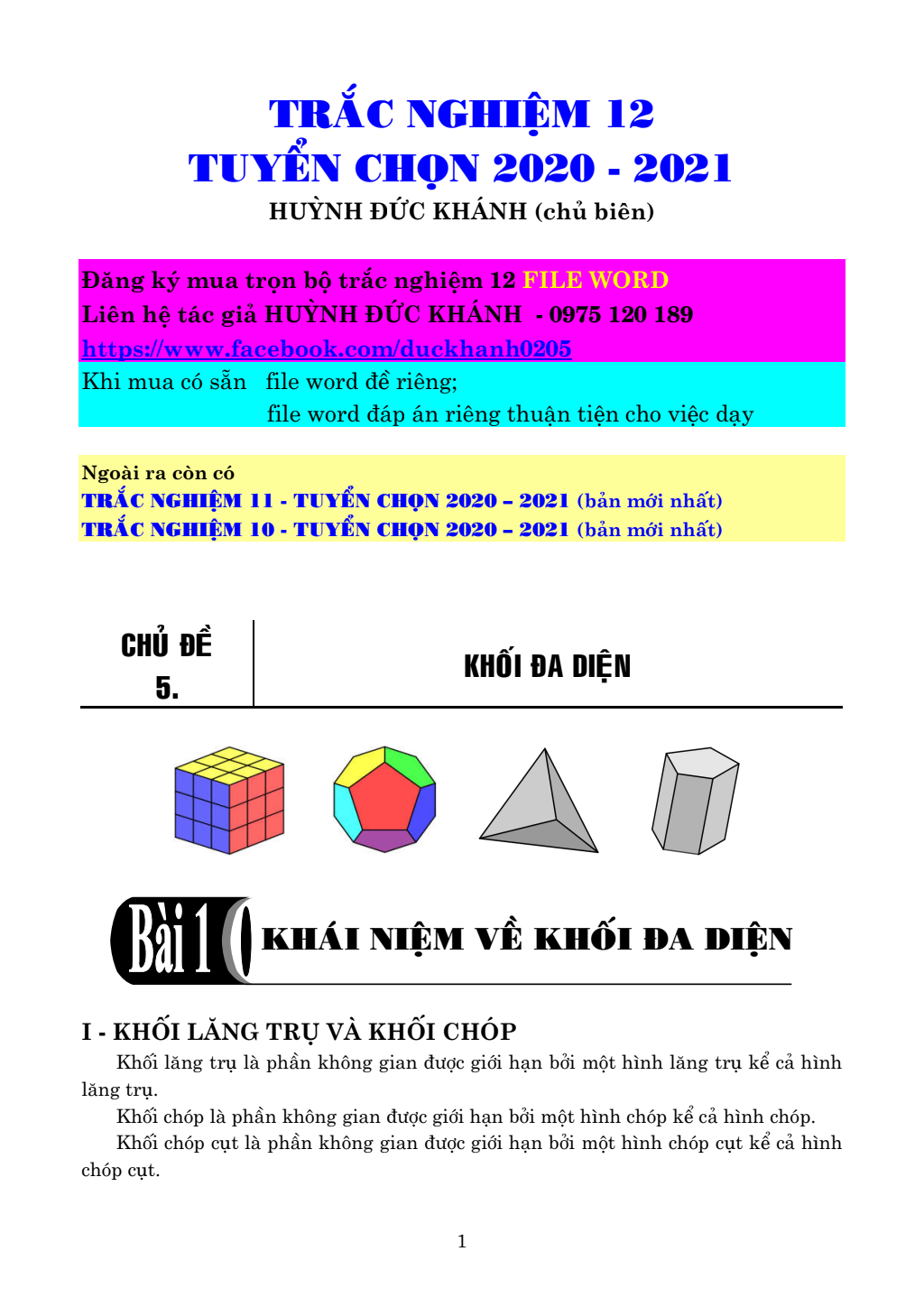 Khối đa diện và thể tích của chúng – Huỳnh Đức Khánh