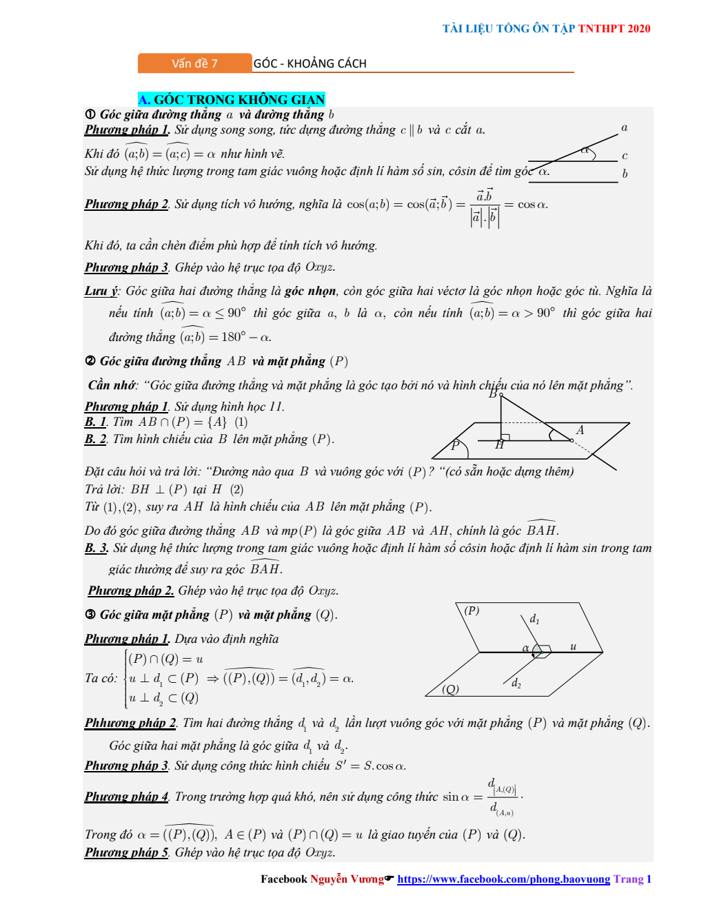 Tổng ôn tập TN THPT 2020 môn Toán- Góc và khoảng cách trong không gian