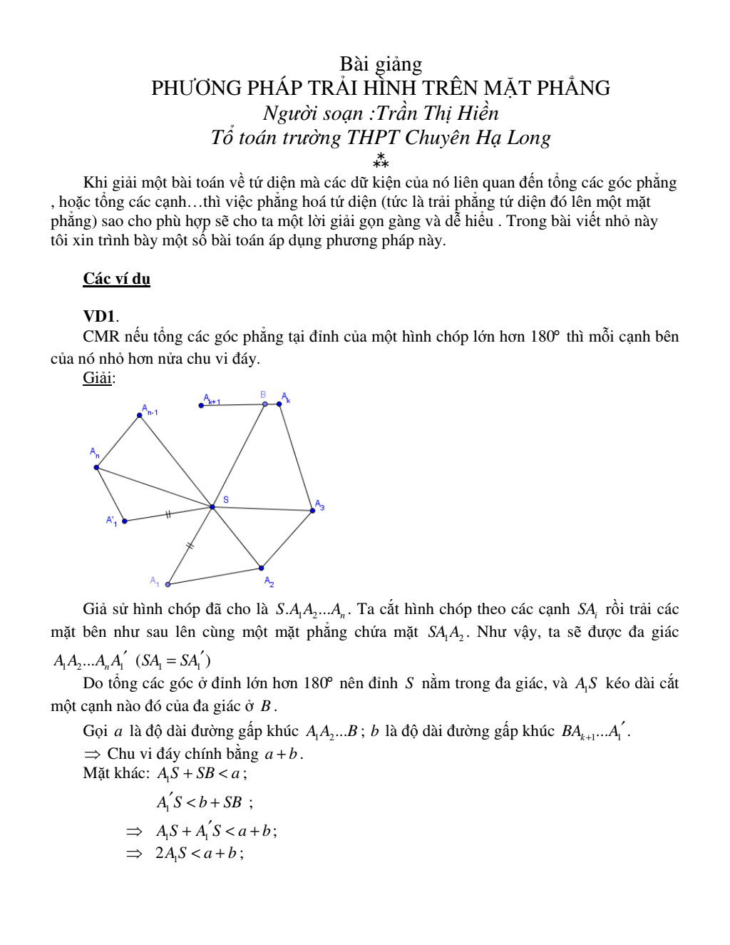 Bài giảng phương pháp trải hình trên mặt phẳng – Trần Thị Hiền