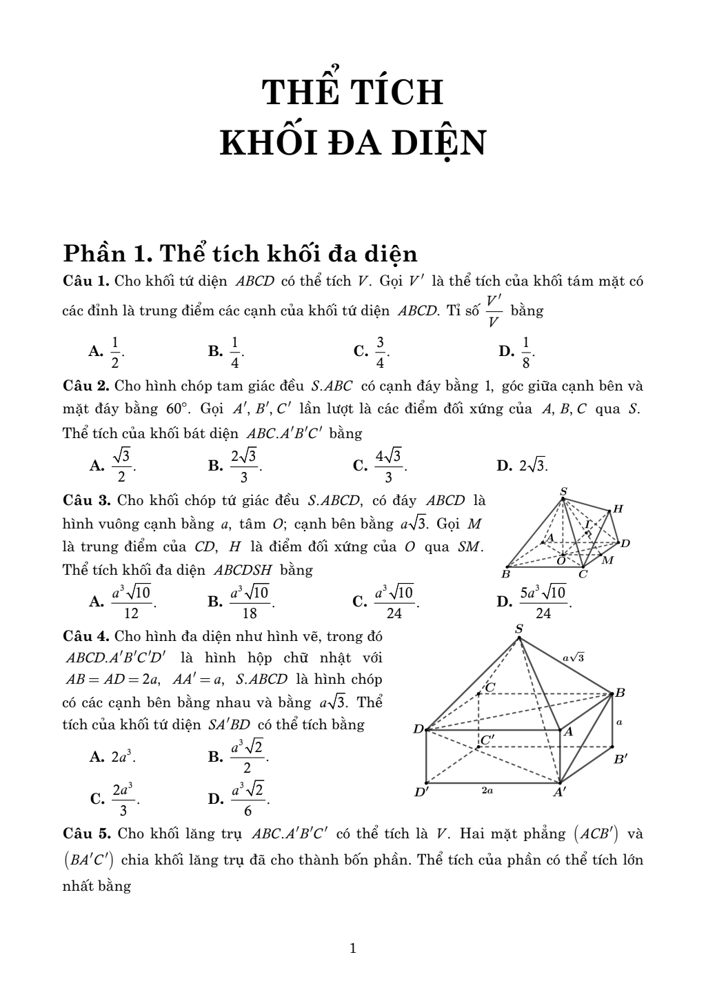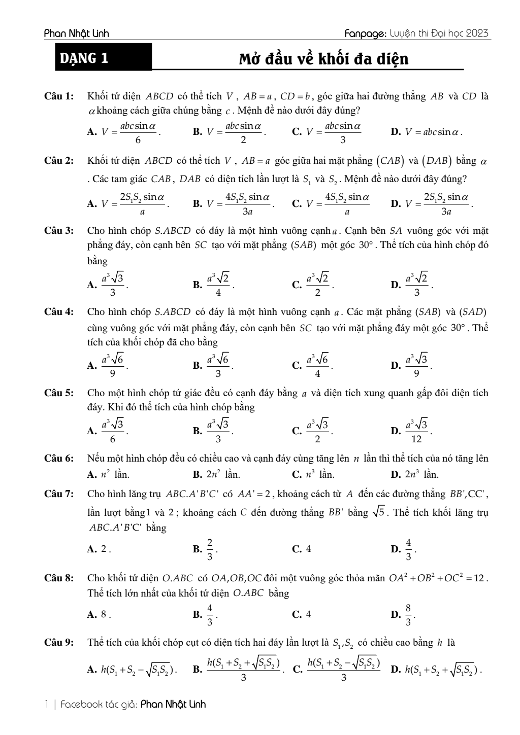 Các dạng bài tập khối đa diện và thể tích khối đa diện – Phùng Hoàng Em
