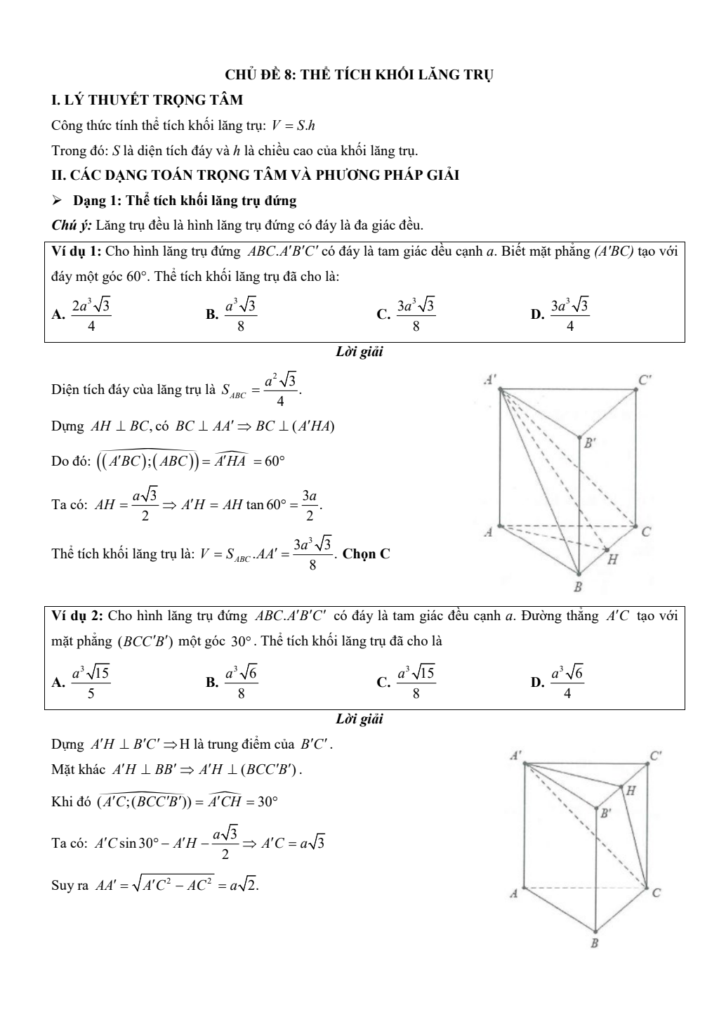 Chuyên đề trắc nghiệm thể tích khối lăng trụ