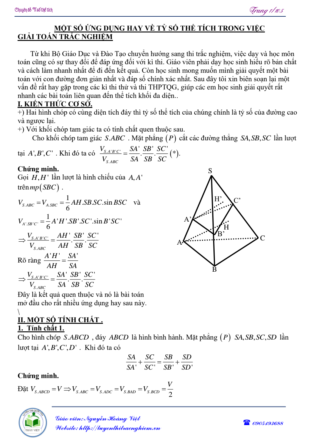 Chuyên đề trắc nghiệm tỉ số thể tích