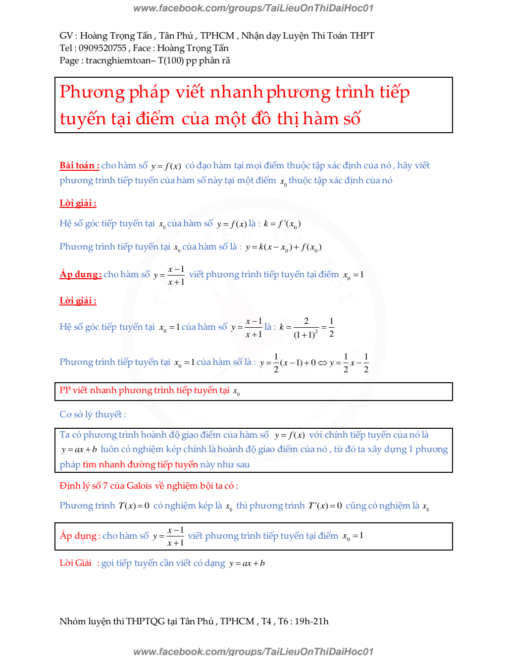 Phuong phap viet nhanh phuong trinh tiep tuyen tai mot diem cua do thi ham so - Hoang Trong Tan.pdf