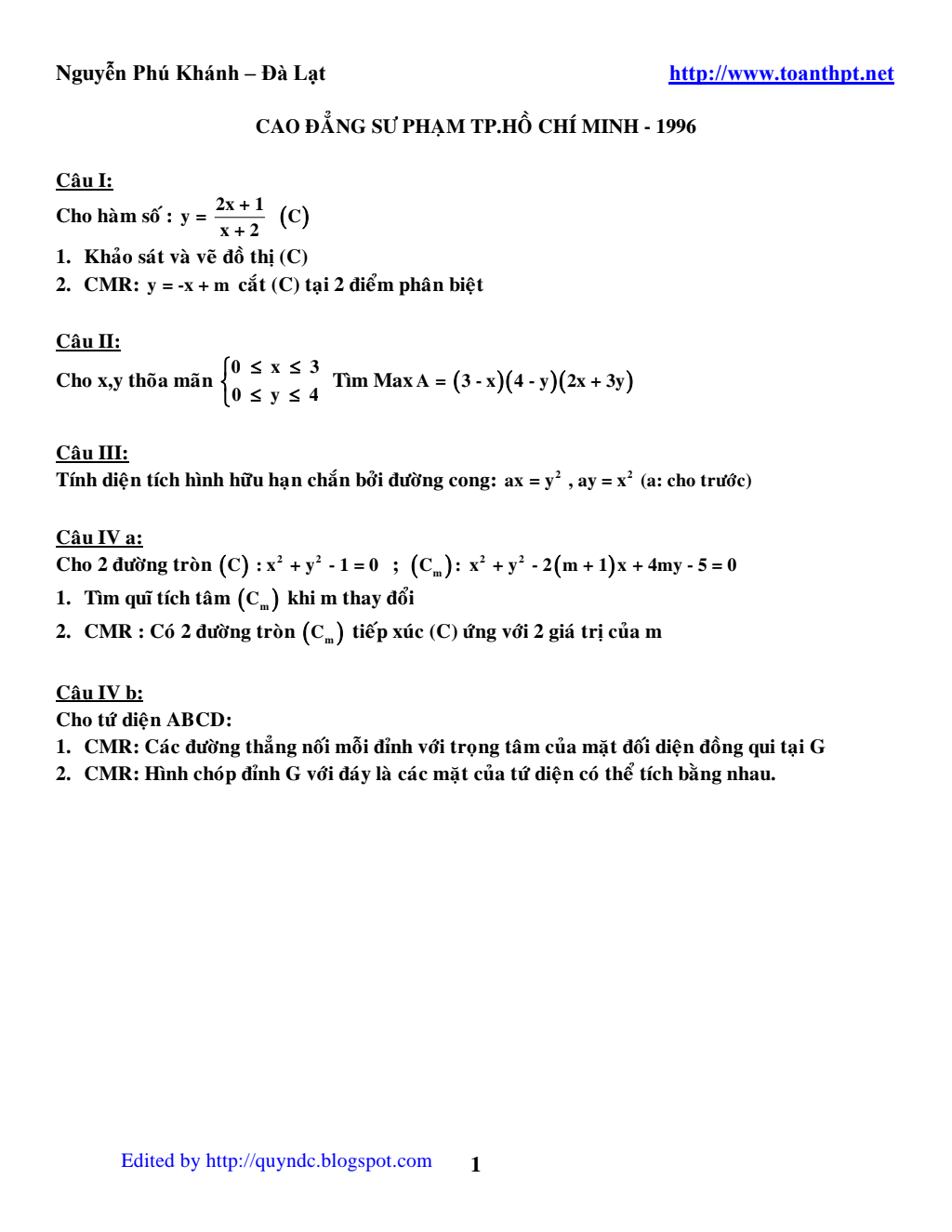 TUYỂN TẬP CÁC ĐỀ THI ĐẠI HỌC CAO ĐẲNG MÔN TOÁN ( có đáp án ).pdf