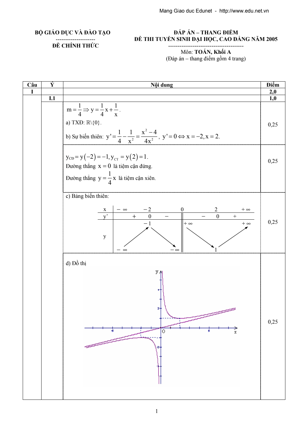 Đề thi và đáp án môn Toán khối A 2005-đáp án.pdf