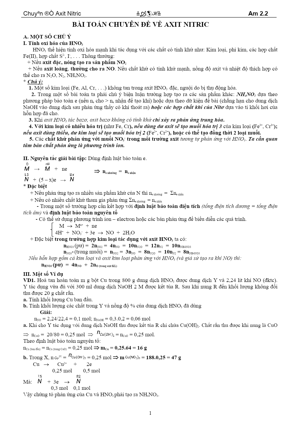 BÀI TOÁN CHUYÊN ĐỀ VỀ AXIT NITRIC.doc