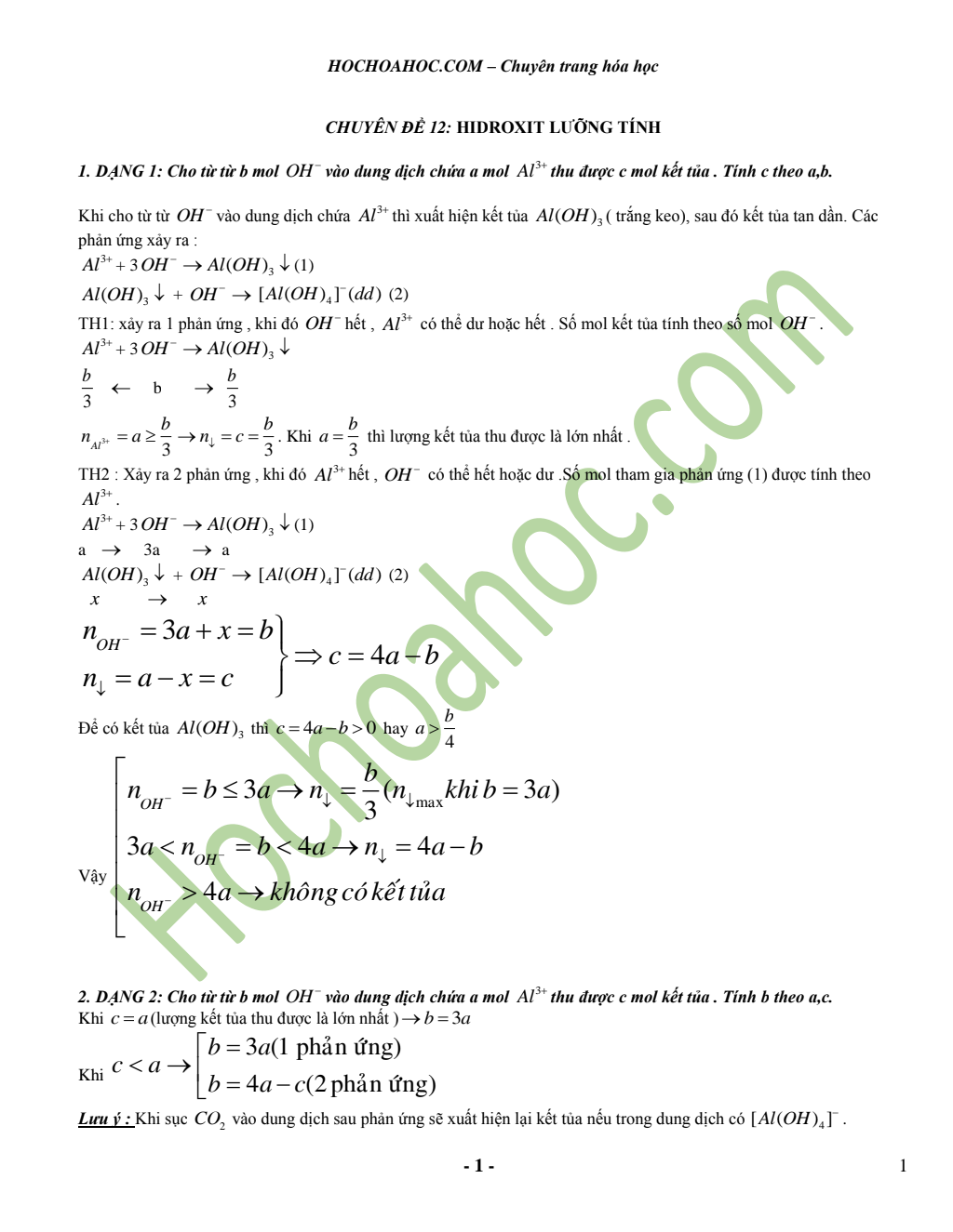 Các dạng bài tập của hidroxit lưỡng tính ( trong đề thi đại học ).pdf