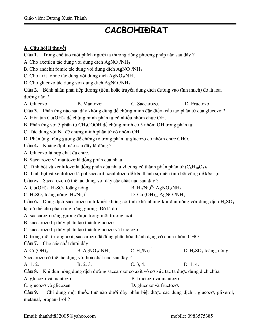 Chuyên đề trắc nghiệm Cacbohiđrat.pdf Mới