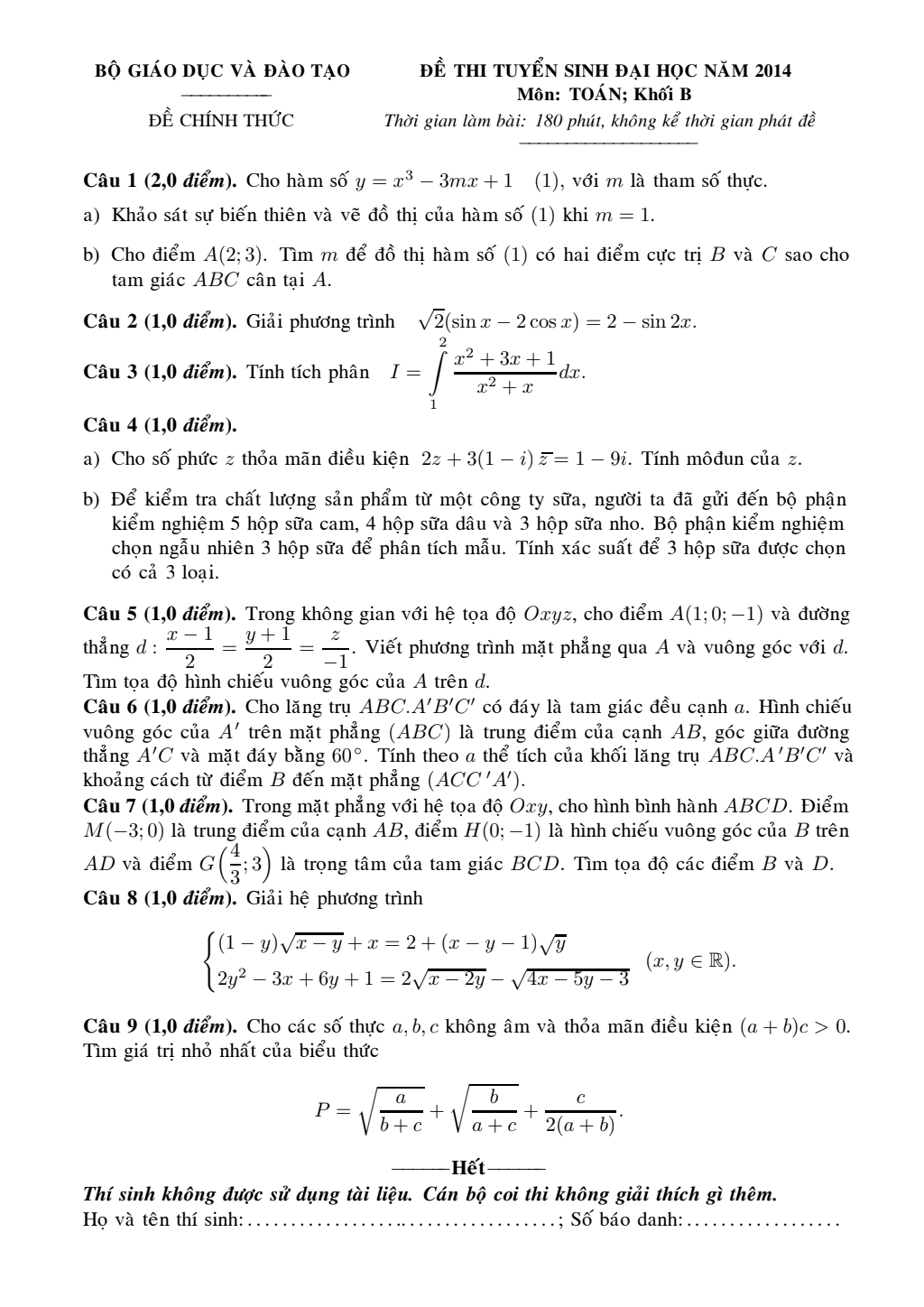 Đề thi đại học khối B 2014.pdf Mới