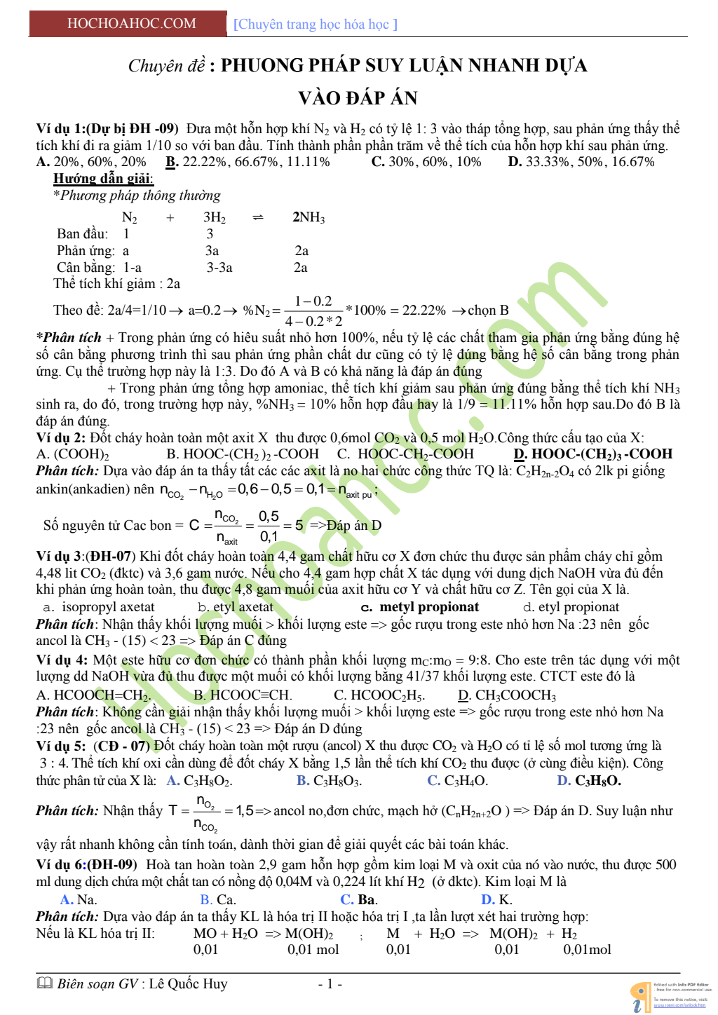 Chuyên đề phương pháp suy luận nhanh trắc nghiệm hóa học dựa vào đáp án.pdf