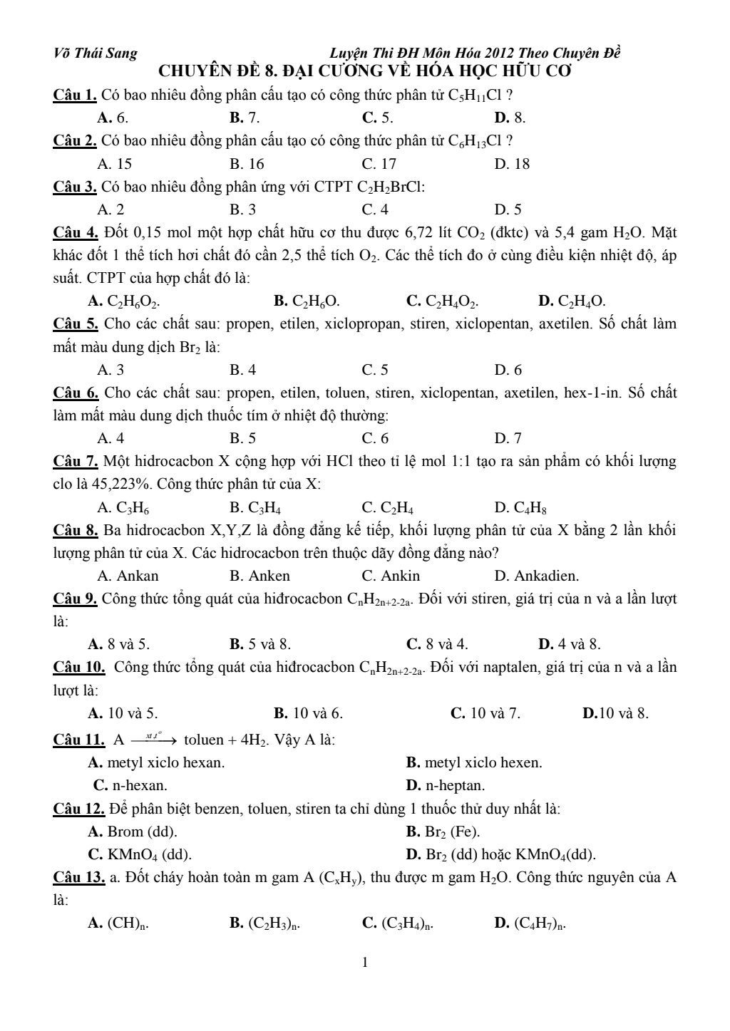 Chuyên đề Đại cương về hóa học hữu cơ.pdf Mới