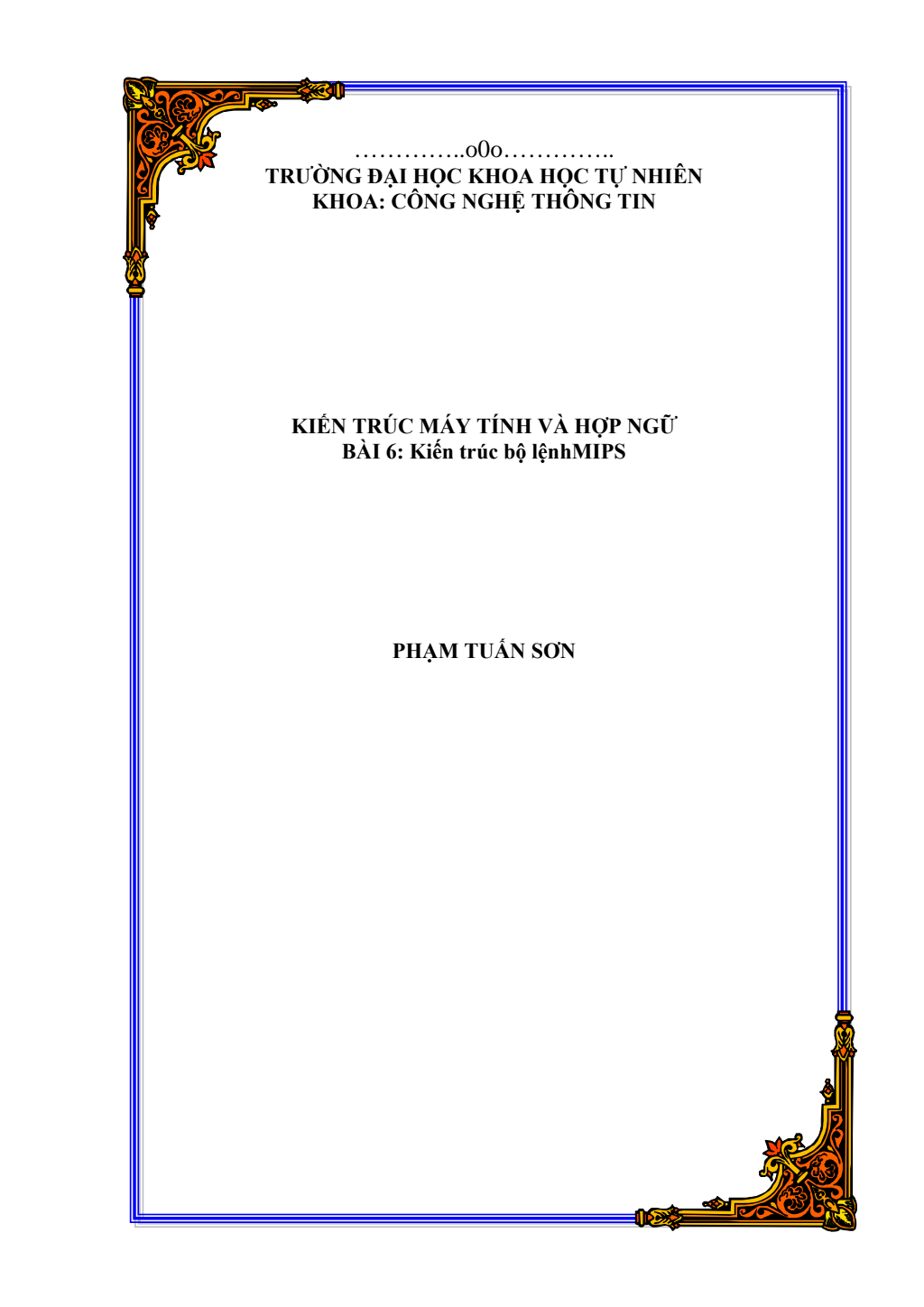 Bài giảng Kiến trúc máy tính và hợp ngữ - Bài Kiến trúc bộ lệnh MIPS.pdf