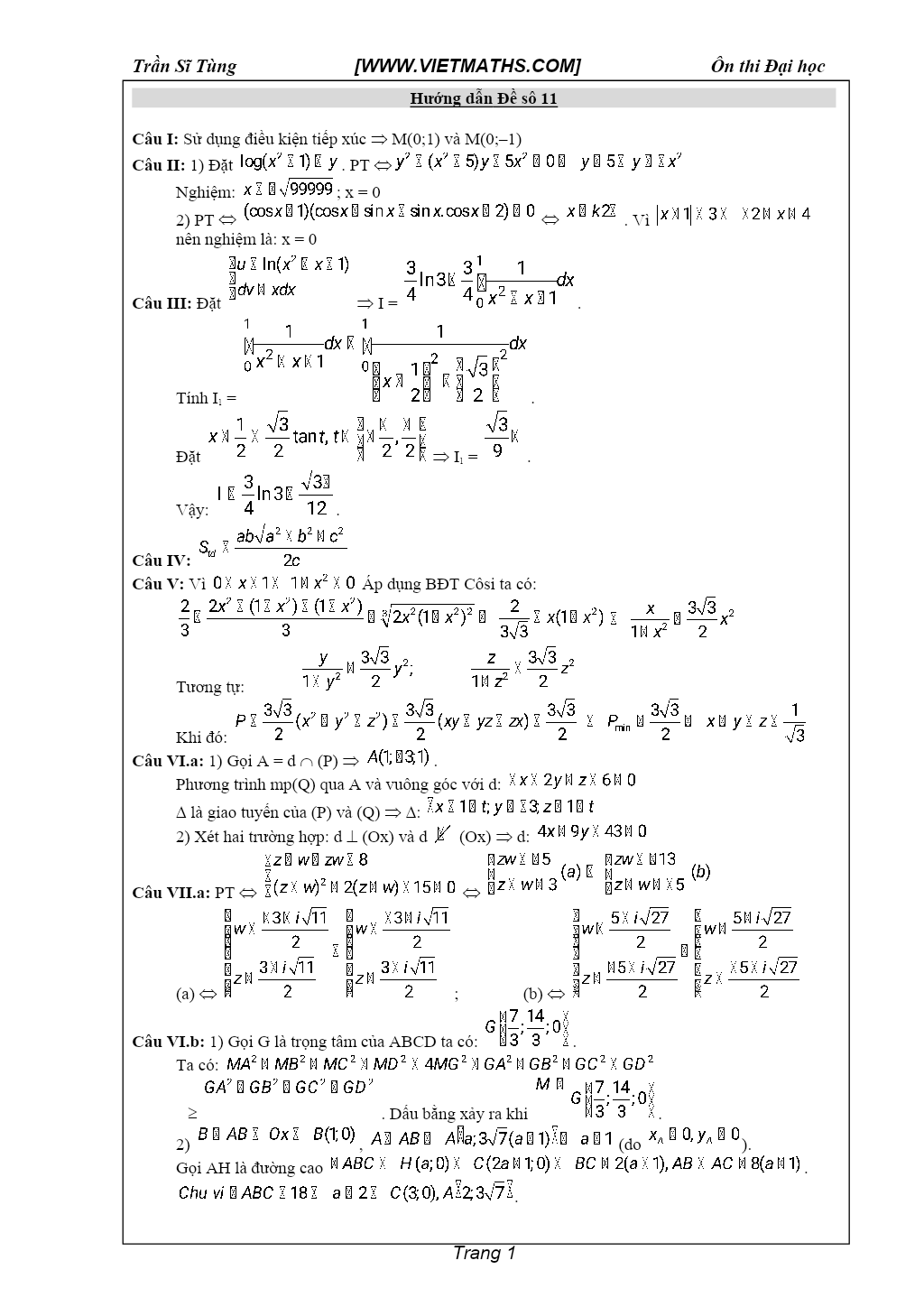 Đáp án Bộ 100 đề thi Toán -Đề 11-20.doc