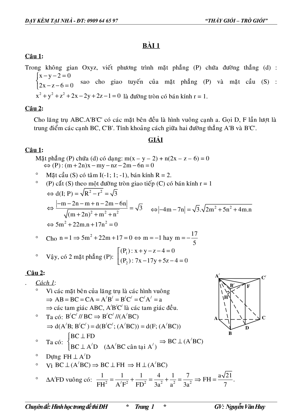 Các kiến thức cần nhớ về hình học để giải toán 12.pdf Mới