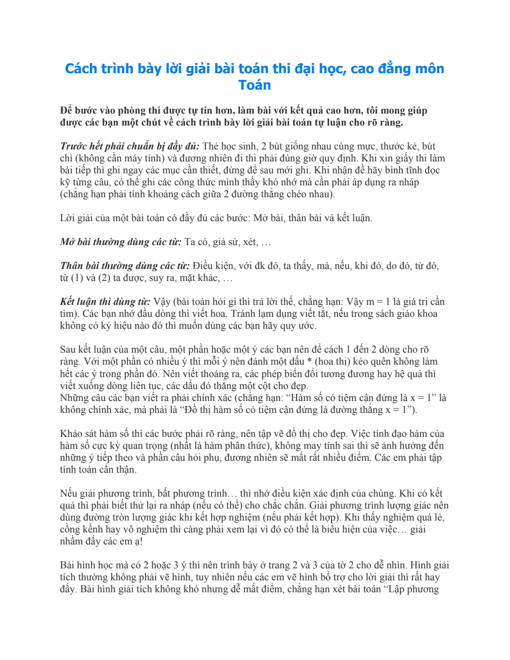 cách trình bày bài giải thi môn toán đại học.pdf Mới