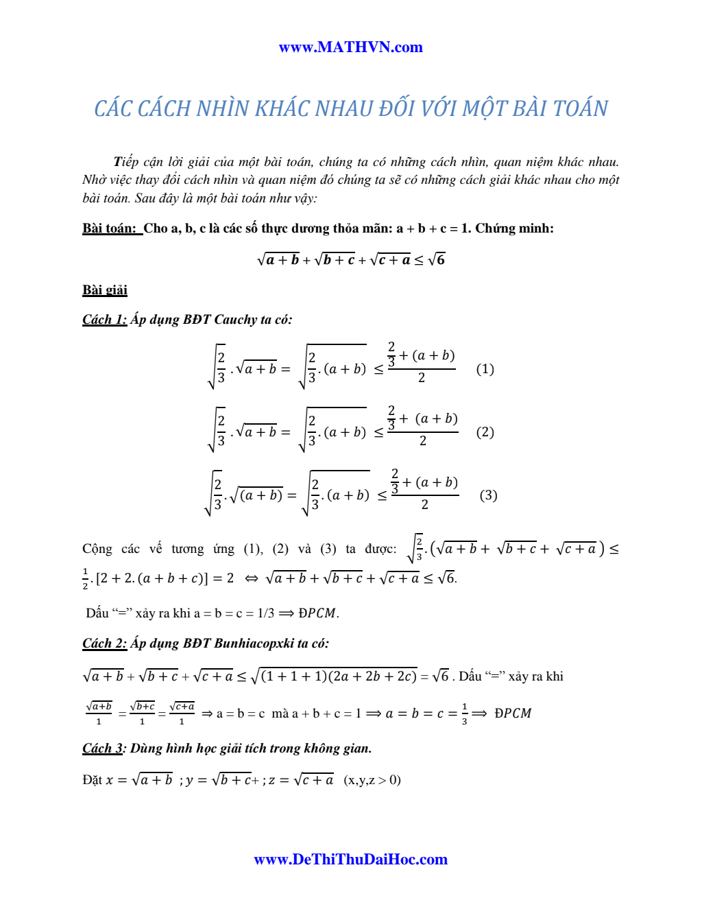 19 cách giải cho 1 bất đẳng thức - CÁC CÁCH NHÌN KHÁC NHAU ĐỐI VỚI MỘT BÀI TOÁN.pdf