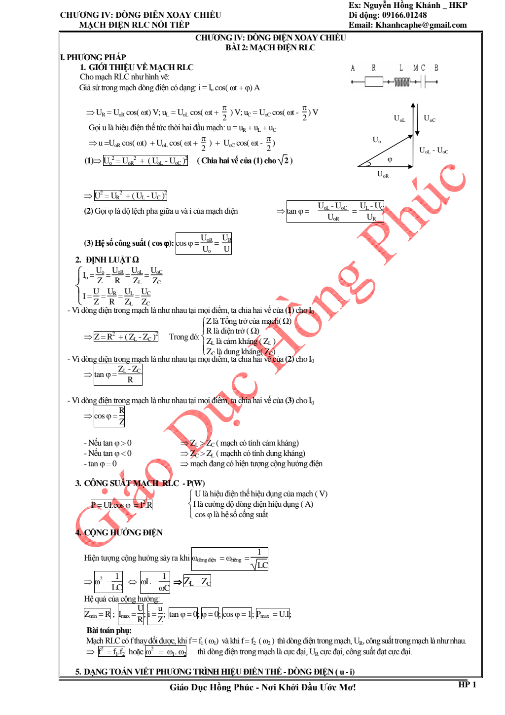Chuyên đề Dòng điện xoay chiều Mạch điện RLC.pdf