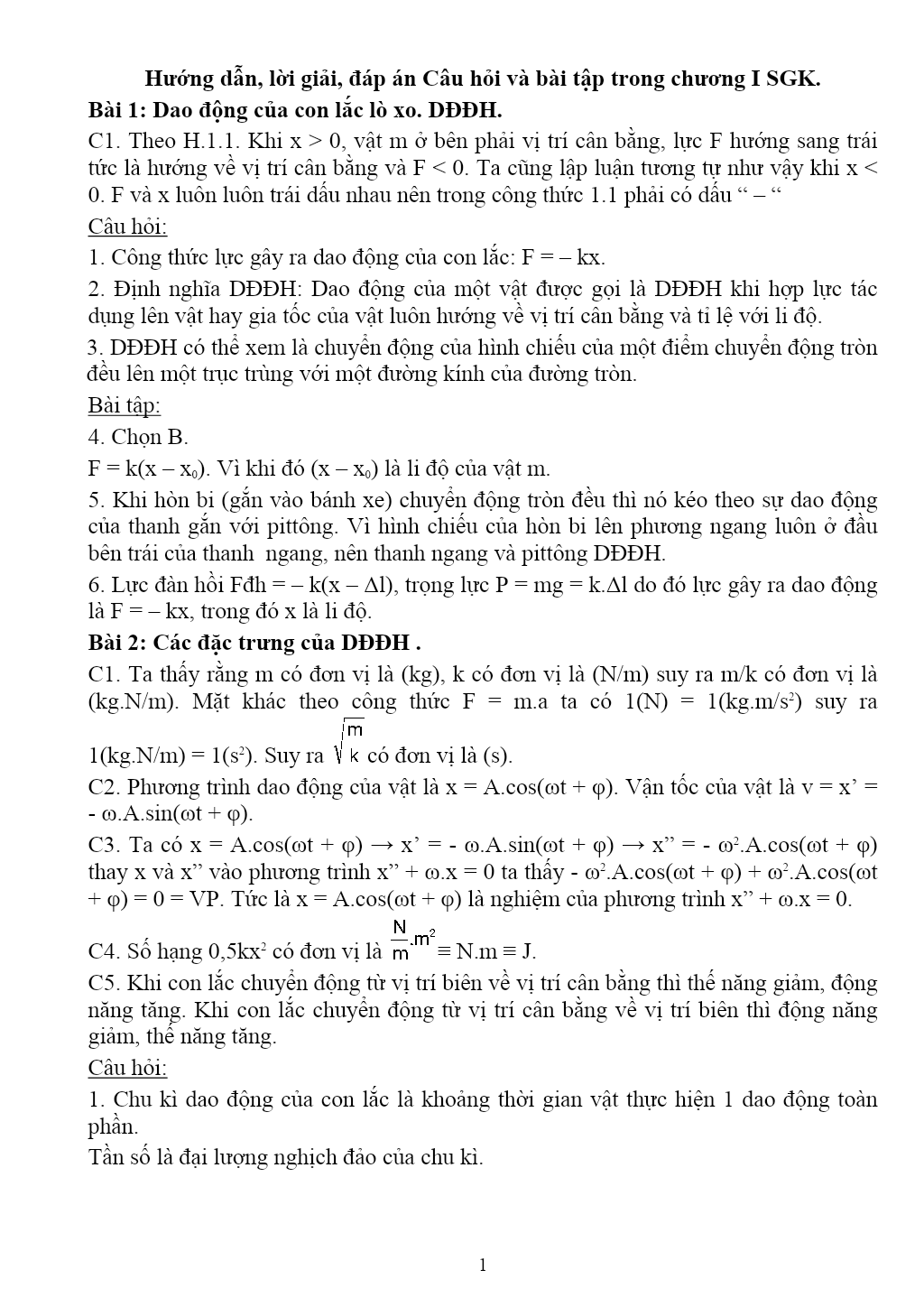 Hướng dẫn, lời giải, đáp án Câu hỏi và bài tập trong chương I SGK Vật lý 12.doc