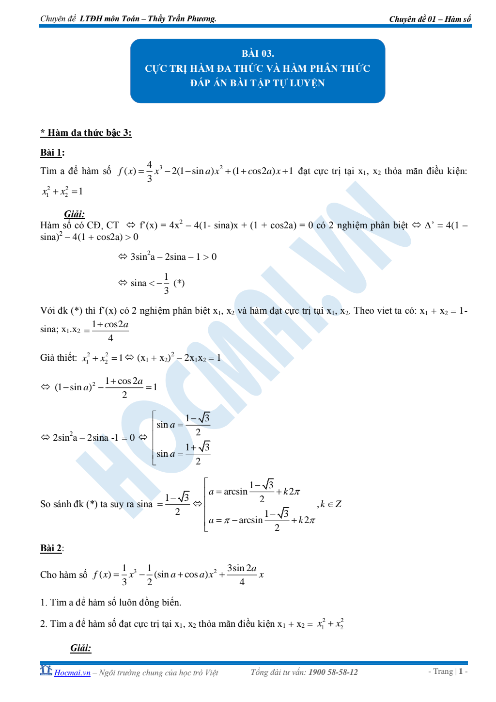 CỰC TRỊ HÀM ĐA THỨC VÀ HÀM PHÂN THỨC ,ĐÁP ÁN BÀI TẬP TỰ LUYỆN.pdf