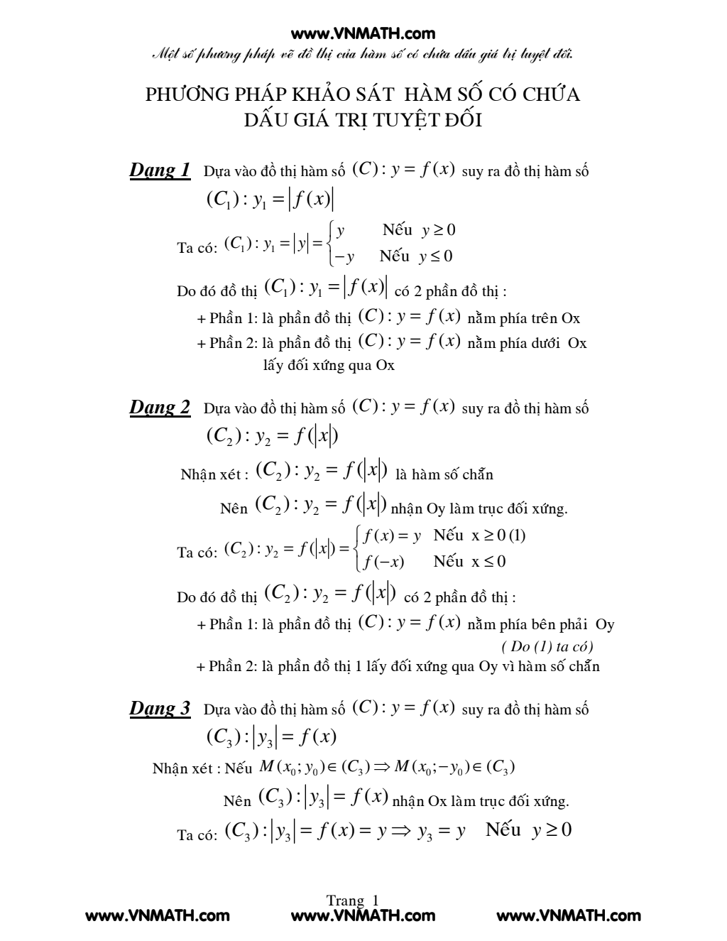 Phương pháp vẽ đồ thị hàm số đầy đủ dạng.pdf