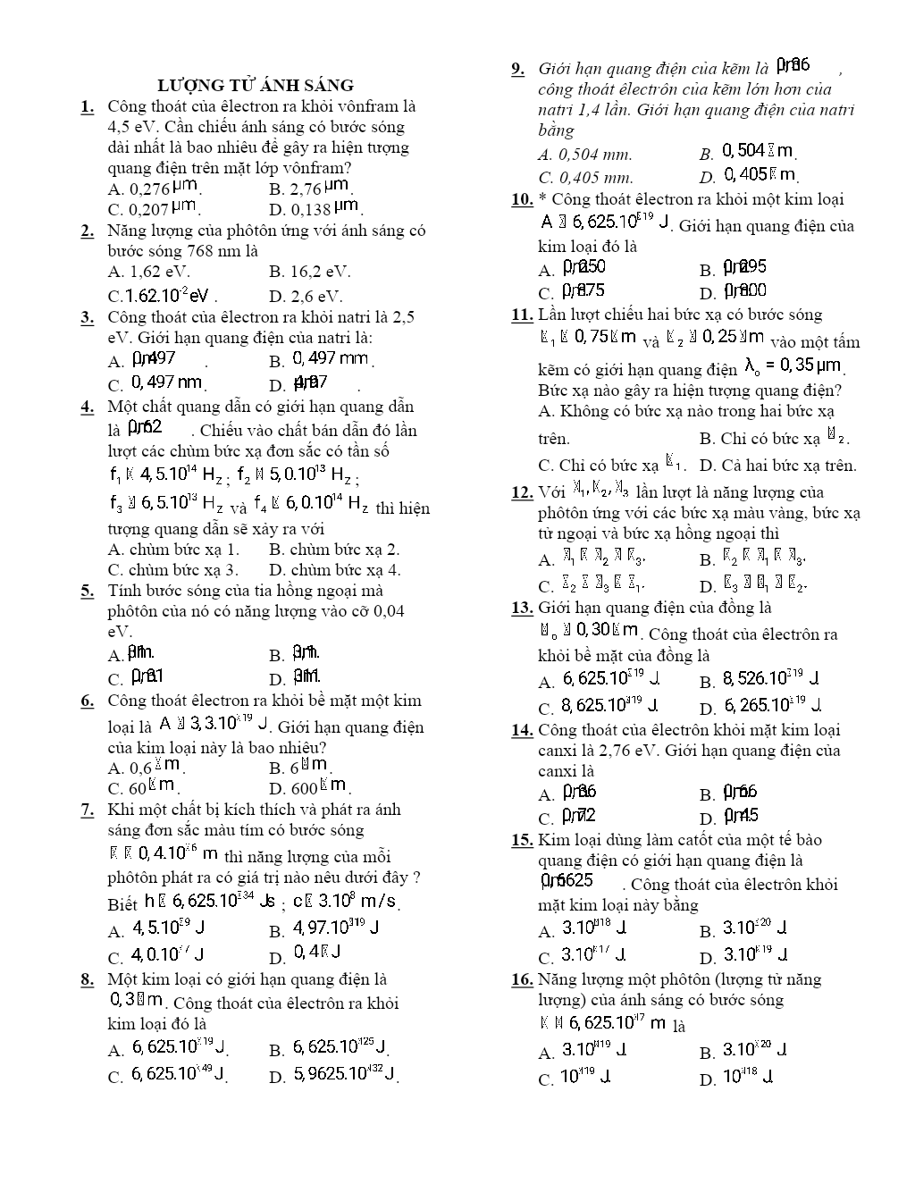 Chuyên đề Luyện thi Đại học - Phần lượng tử ánh sáng.doc