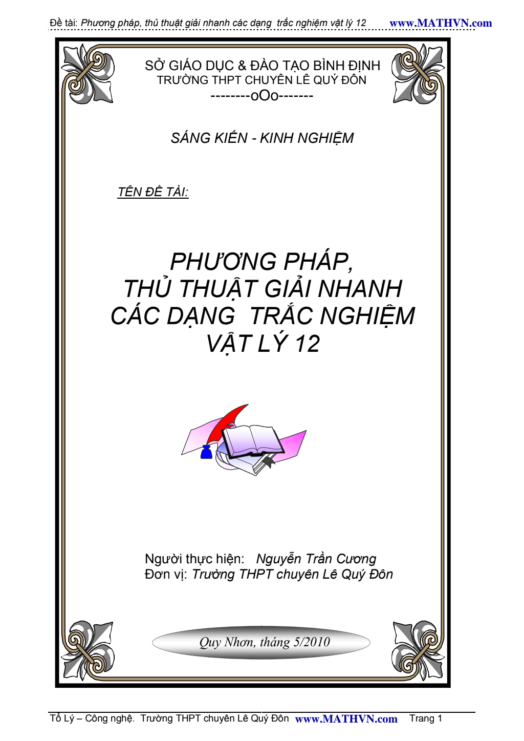 Phương pháp giải nhanh đề thi trắc nghiệm môn Lý (lớp 12, ôn thi đại học).pdf