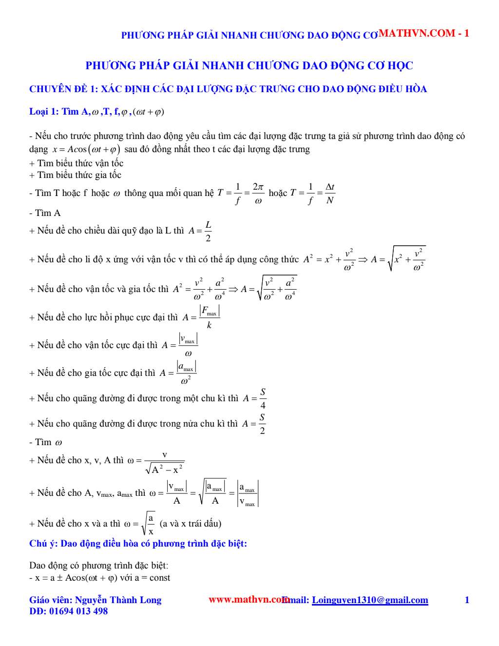 Chuyên đề Dao động cơ học Ôn thi Đại học môn Lý gồm 11 phần Chuyên đề con.pdf
