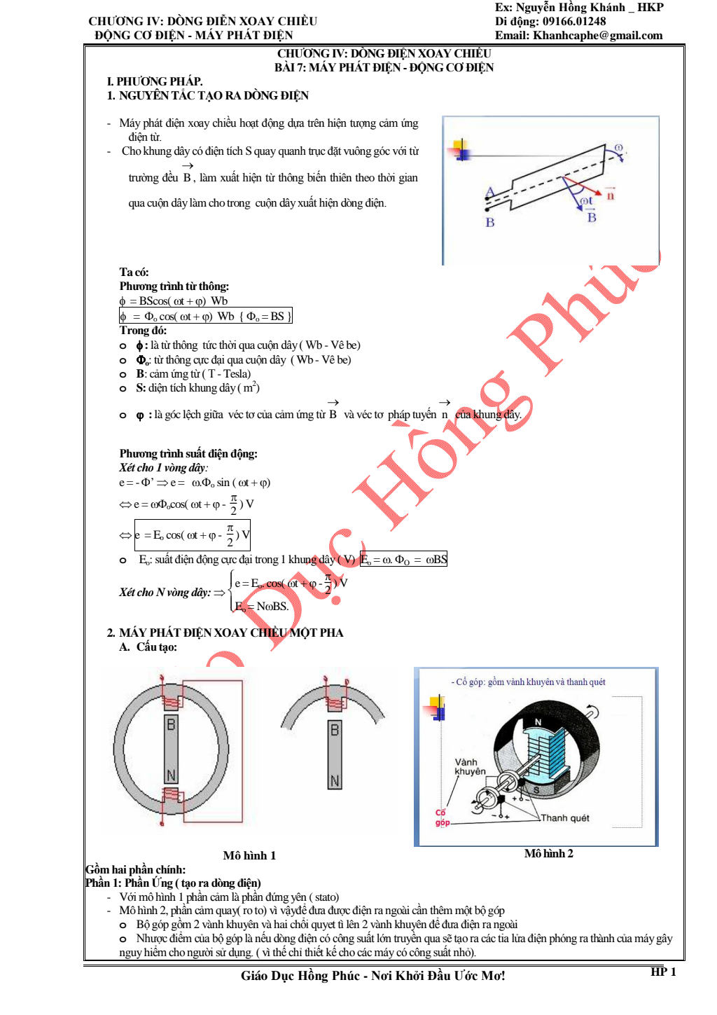 Chuyên đề Dòng điện xoay chiều Máy phát điện - Động cơ điện.pdf