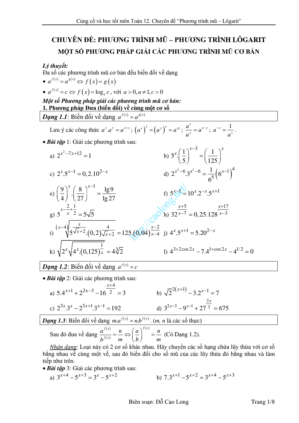 Tài liệu Chuyên đề phương trình mũ và logarit cơ bản.pdf