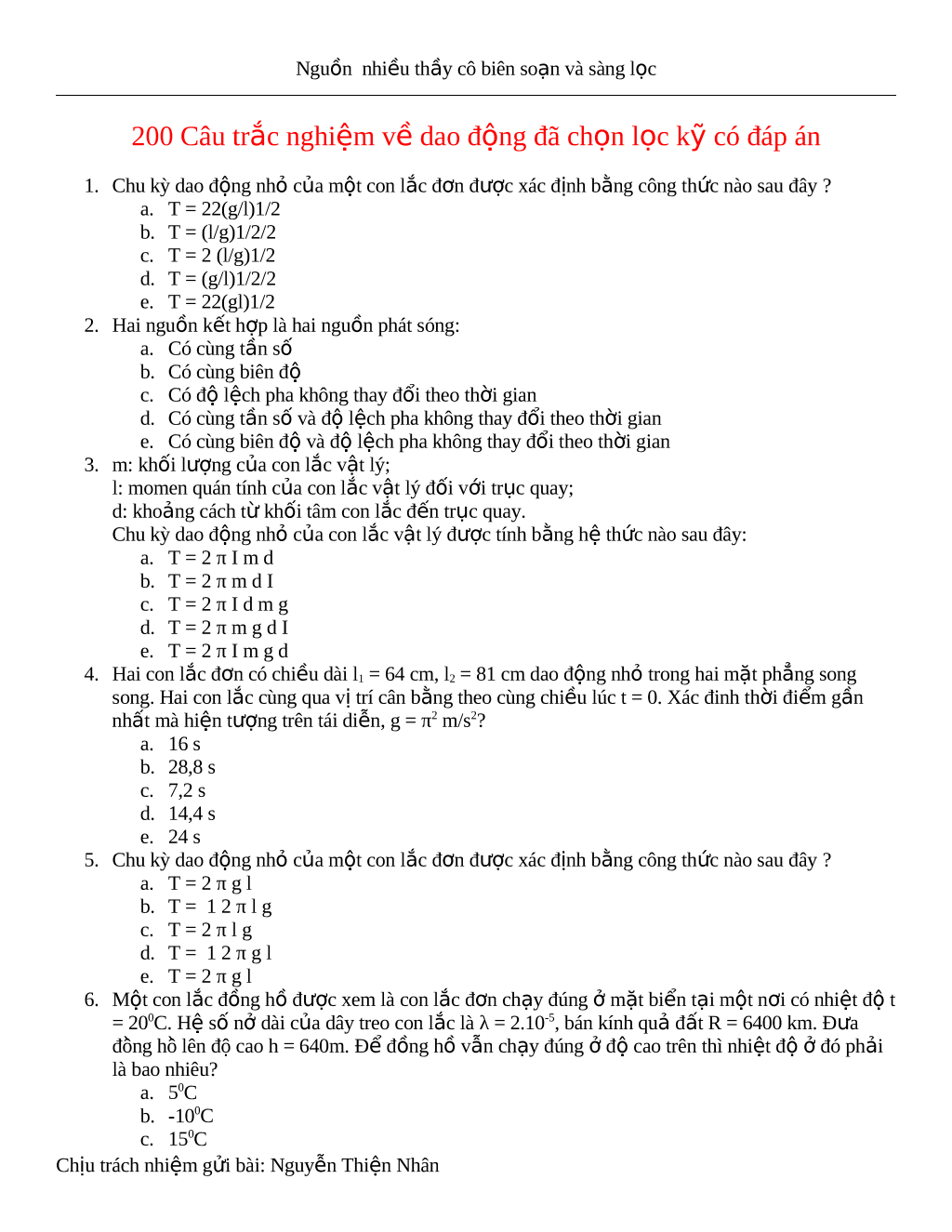 200 câu trắc nghiệm về dao động đã chọn lọc kỹ có đáp án.pdf