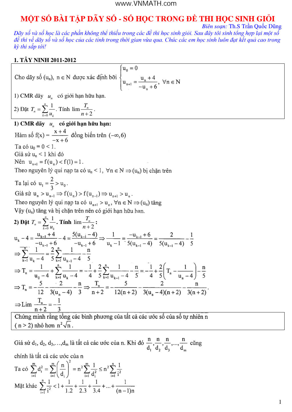 MỘT SỐ BÀI TẬP DÃY SỐ - SỐ HỌC TRONG ĐỀ THI HỌC SINH GIỎI.pdf