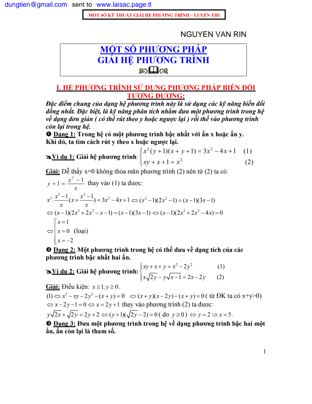 Một số phương pháp giải hệ phương trình - Nguyễn Minh Nhiên.pdf