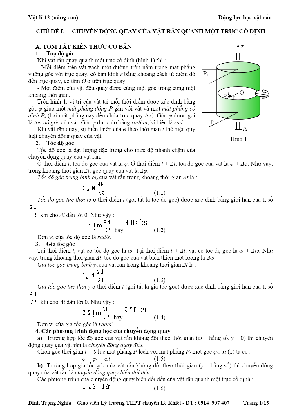 Chuyên đề Chuyển động quay của vật rắn quanh một trục cố định.doc