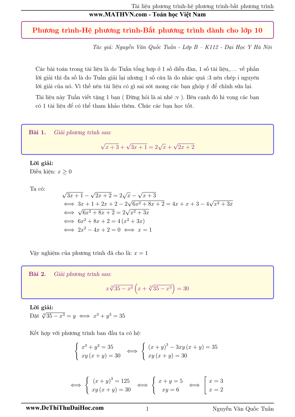 50 bài phương trình, bất pt, hệ pt vô tỉ có lời giải - Nguyễn Văn Quốc Tuấn.pdf