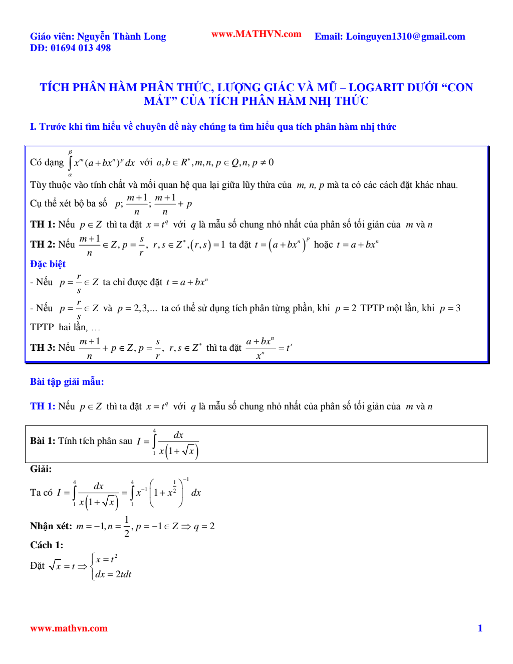 Ôn thi Đại học môn Toán - Chuyên đề Tích phân.pdf