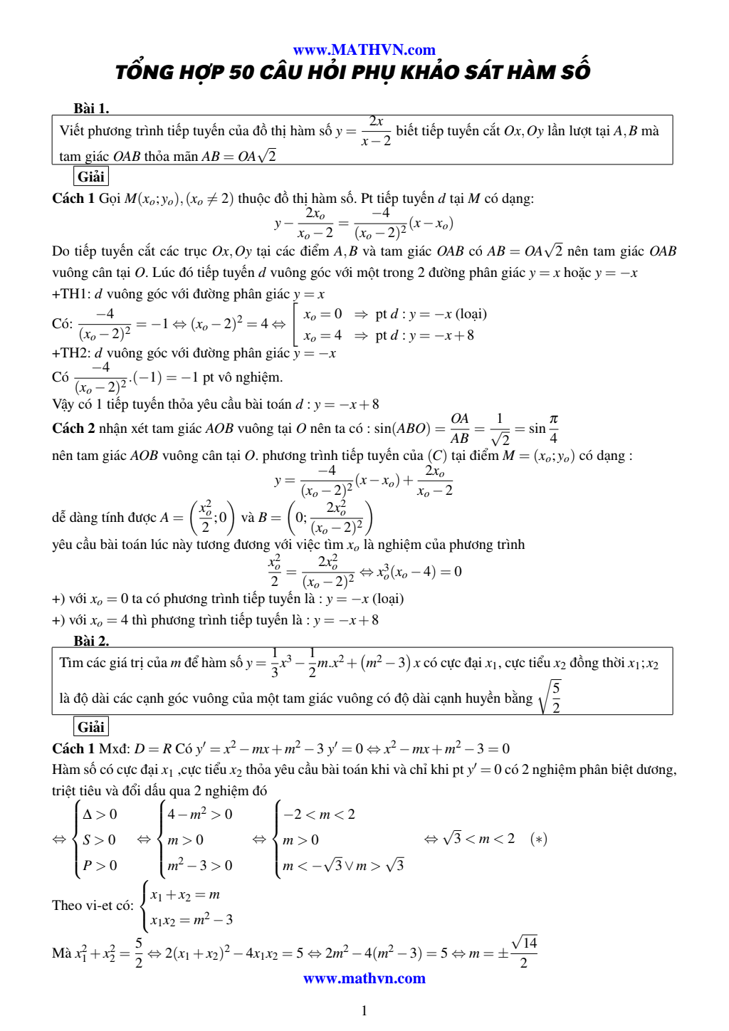 50 câu hỏi phụ khảo sát hàm số có lời giải.pdf New