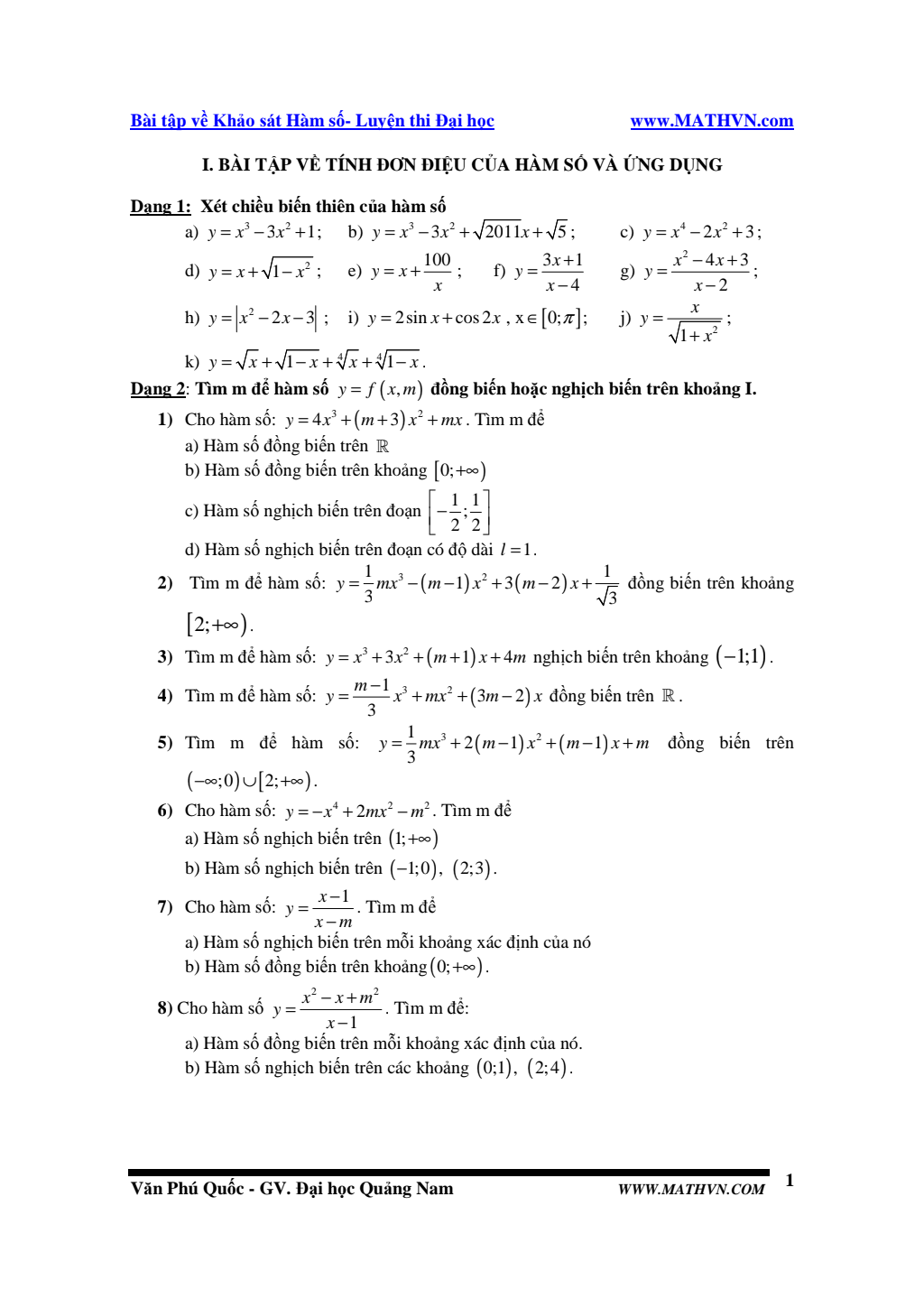 Bài tập KHẢO SÁT HÀM SỐ luyện thi Đại học.pdf New