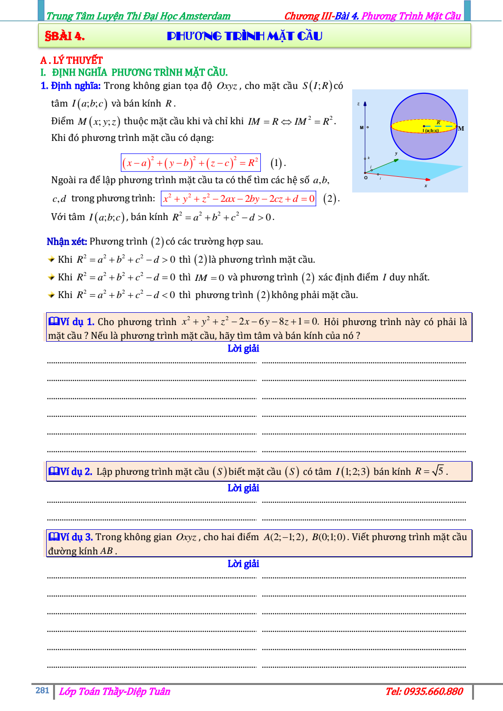 Bài toán phương trình mặt cầu – Diệp Tuân
