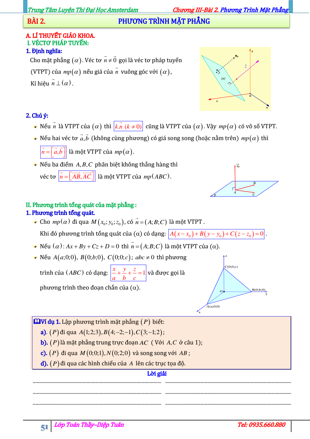 Bài toán phương trình mặt phẳng – Diệp Tuân