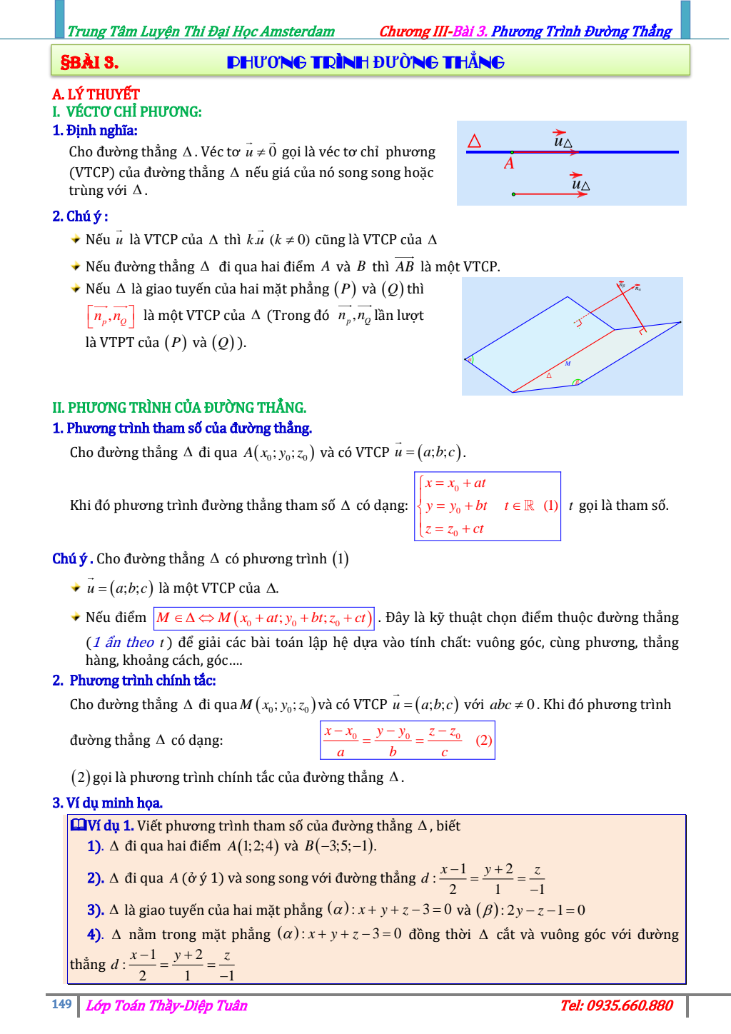 Bài toán phương trình đường thẳng – Diệp Tuân