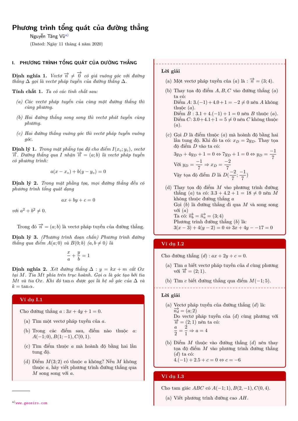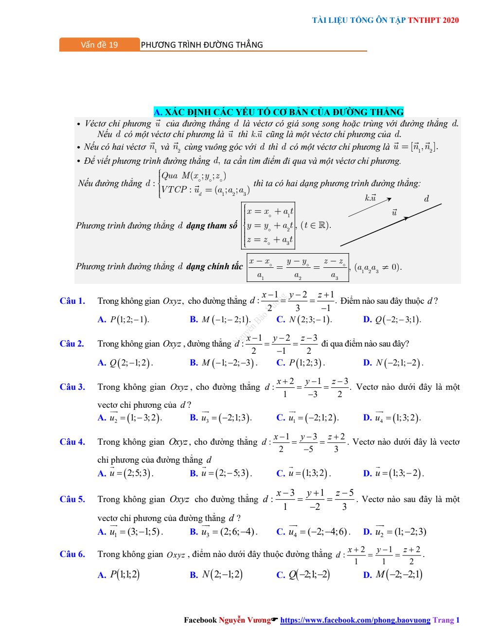 Tổng ôn tập TN THPT 2020 môn Toán-Phương trình đường thẳng