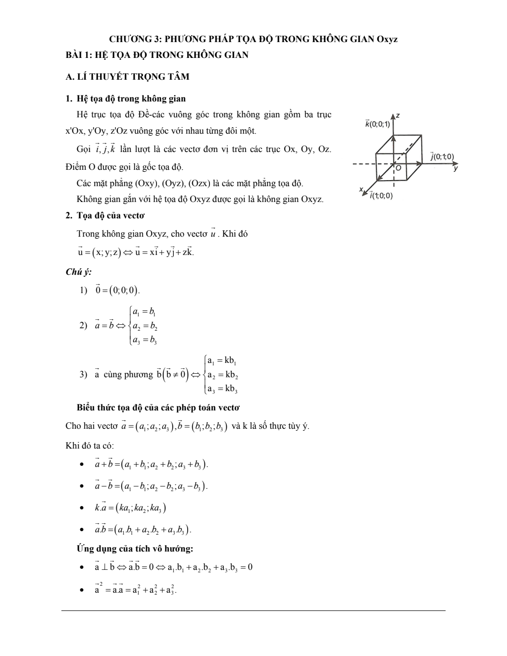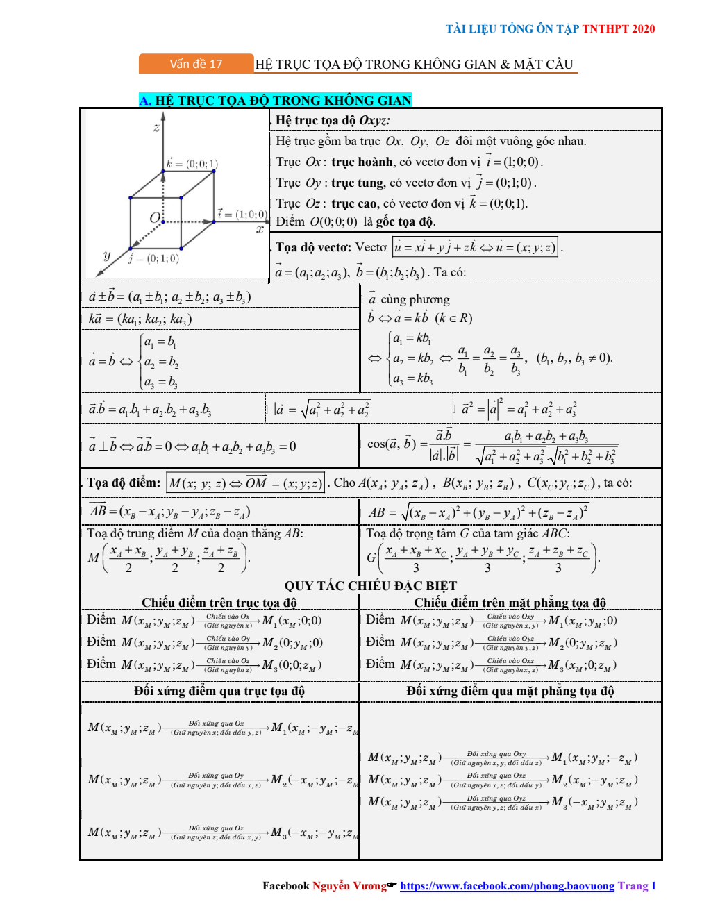 Tổng ôn tập TN THPT 2020 môn Toán-Hệ trục tọa độ trong không gian