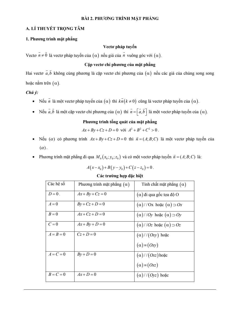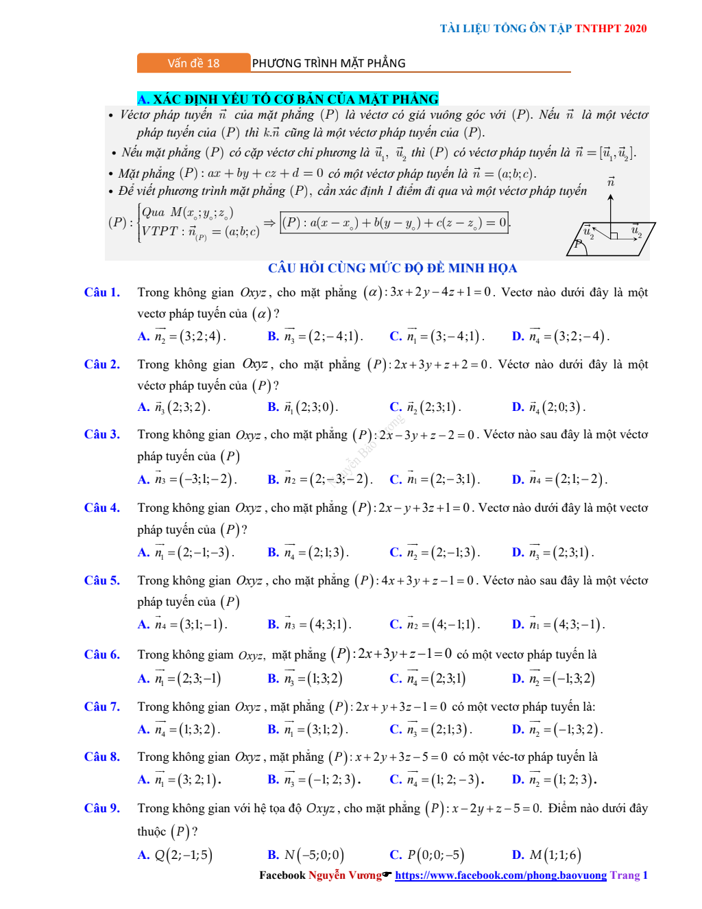 Tổng ôn tập TN THPT 2020 môn Toán-Phương trình mặt phẳng
