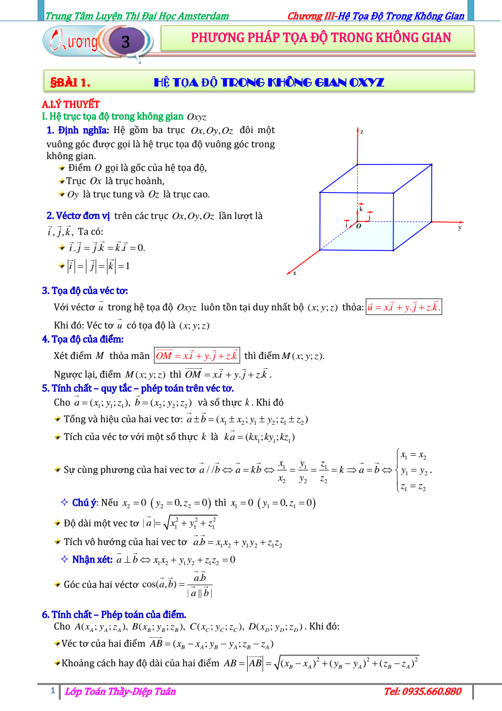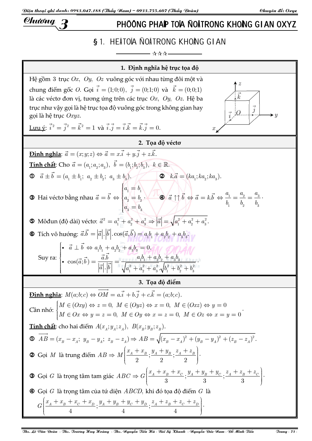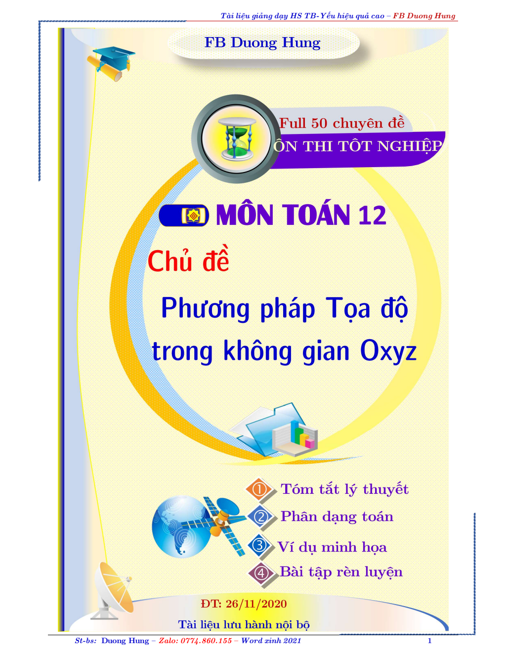 Chuyên đề hình học tọa độ trong không gian Oxyz