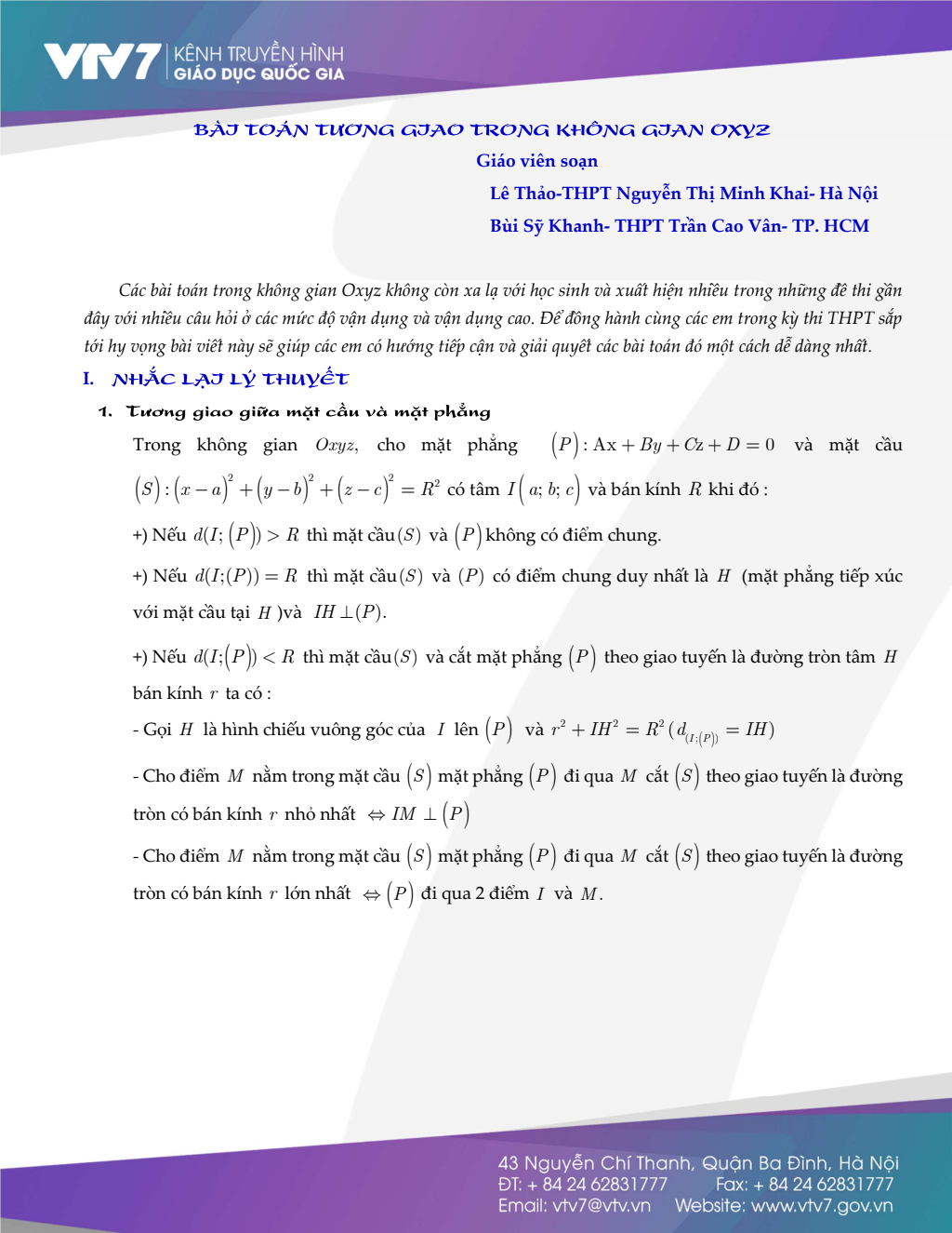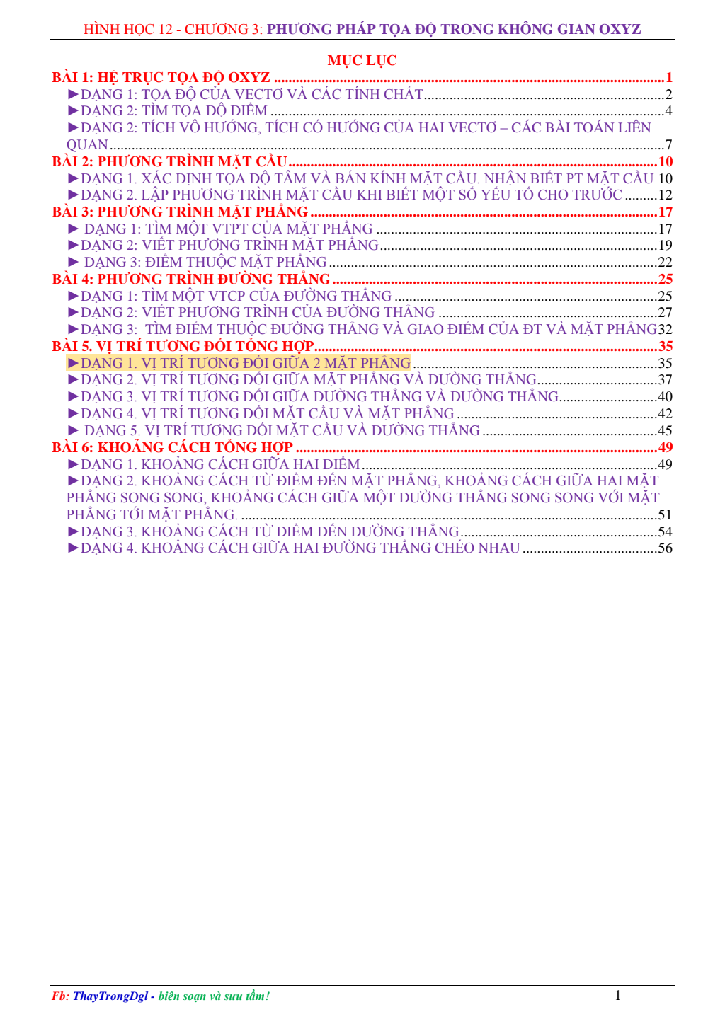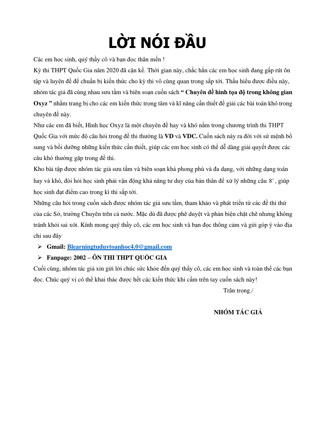 Chuyên đề hình học tọa độ trong không gian Oxyz