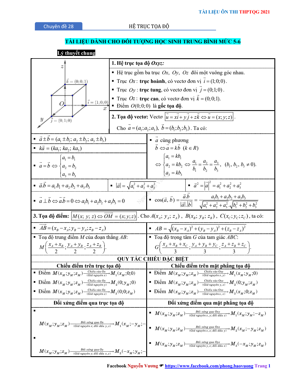 Chuyên đề phương pháp toạ độ trong không gian ôn thi THPT 2021 – Nguyễn Bảo Vương