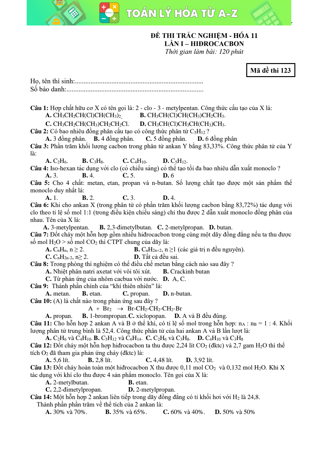 Bài tập trắc nghiệm về Ankan - Anken - Ankin có đáp án.pdf