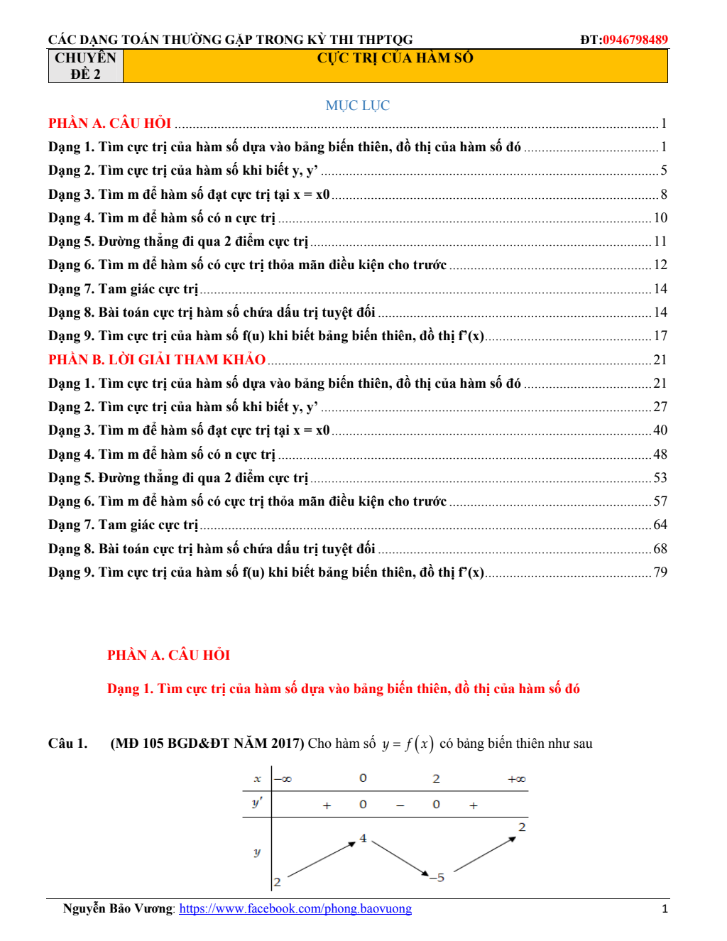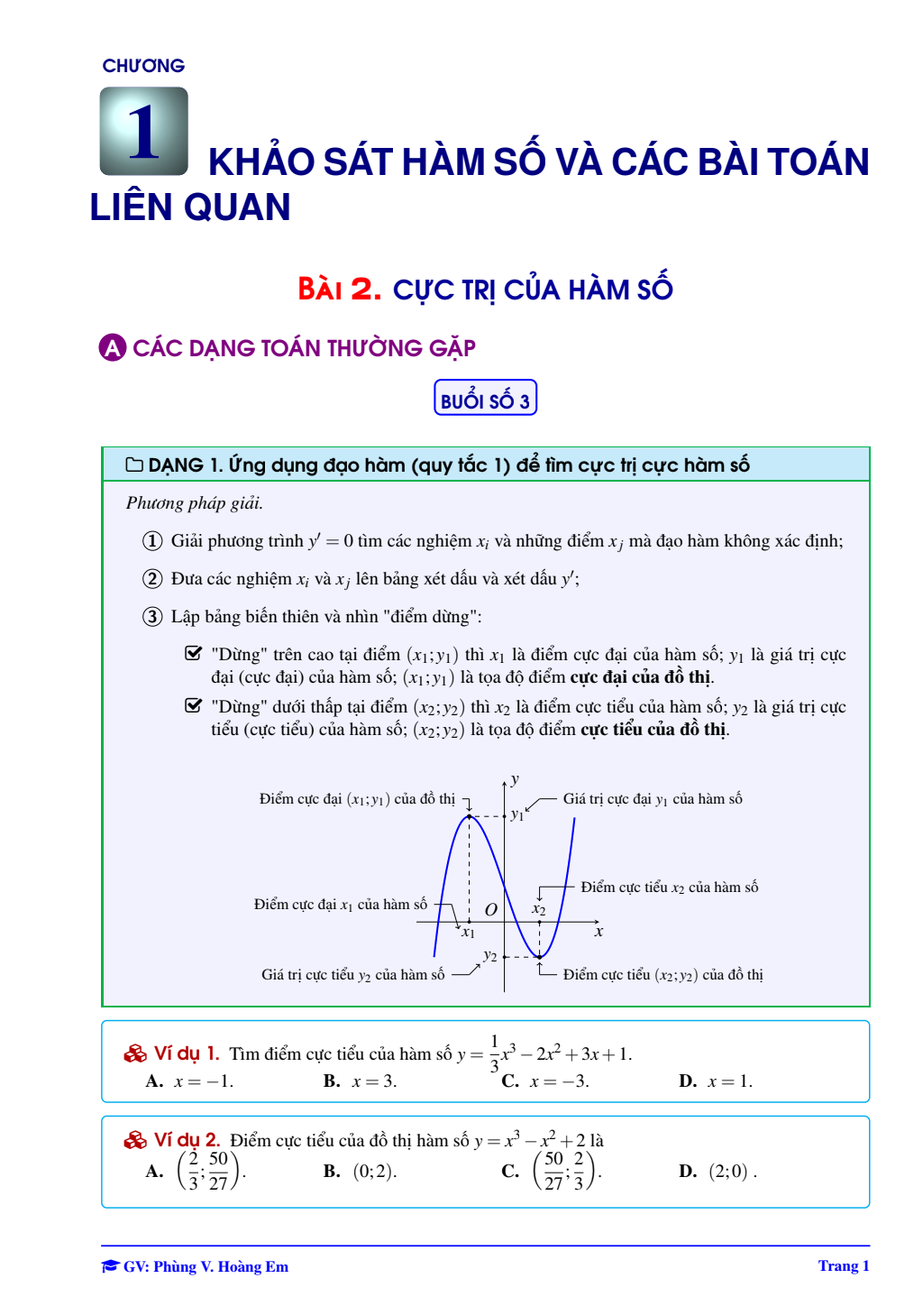 Bài giảng cực trị của hàm số – Phùng Hoàng Em